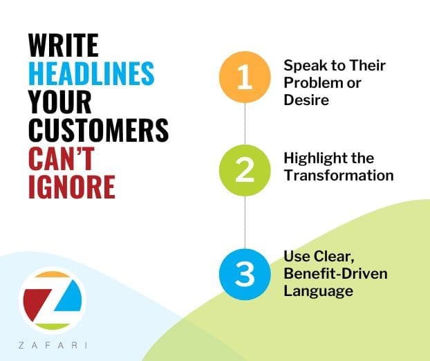 Your customer isn’t interested in what you sell —they’re interested in what your product or service can do for them. The most effective headlines tap directly into their pain points or dreams.