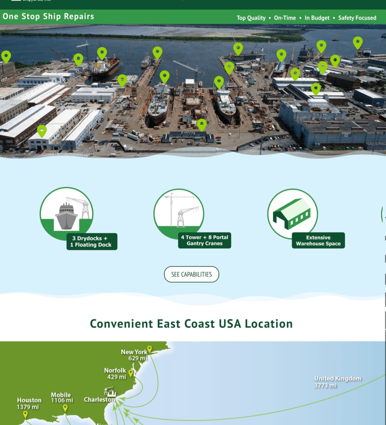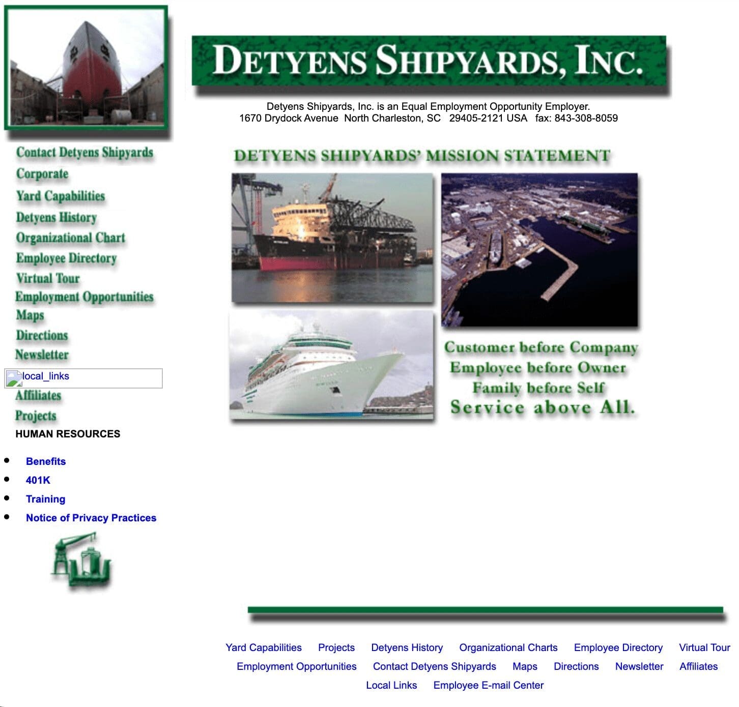 Detyens Shipyard, Inc. specializes in ship repair and maintenance services, and its website has a unique and engaging design.