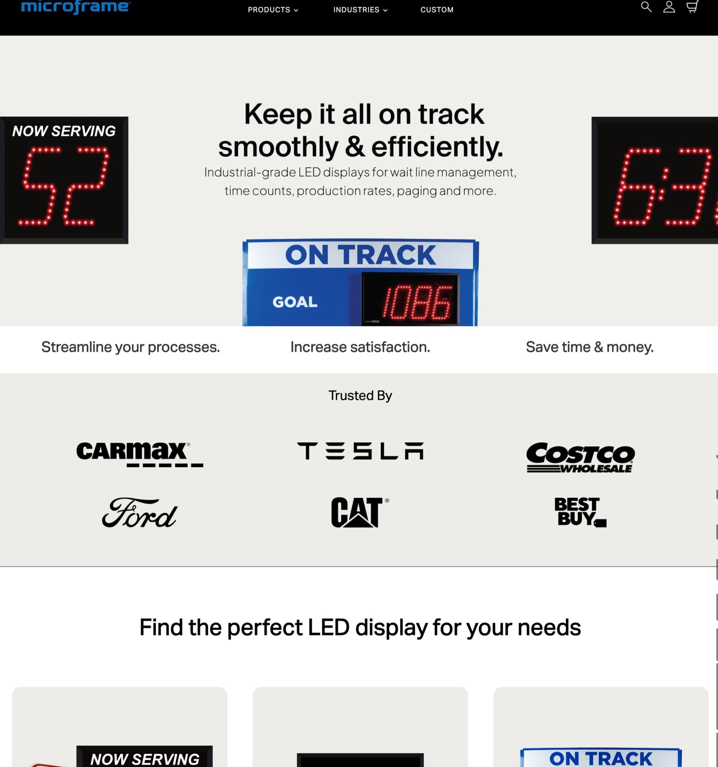 Microframe Corporation is a leader in designing and manufacturing LED Displays, catering to various industries with their range of products. Their offerings include large, industrial-grade Countdown Timers, Take-A-Number Queuing Systems, Truck Scale Remote Displays, and more LED display solutions.